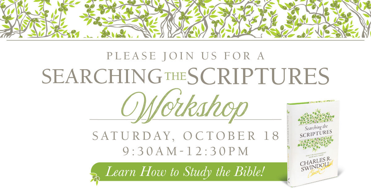 Spend the morning with us at Insight for Living learning how to dig deeply in the Scriptures and uncover its profound truth for our lives. You’ll walk away equipped with the Bible-study method Pastor Chuck Swindoll teaches in his book Searching the Scriptures.